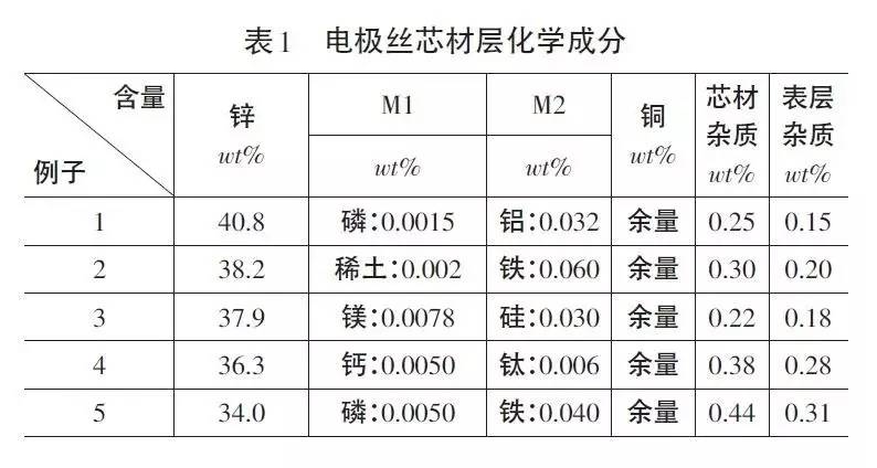 (1)以市場合適的價(jià)格采購銅、鋅、磷、稀土、鈉、鉀、鎂、鈣、鋁、硅、錳、鈦、鉻、鐵原材料,經(jīng)化學(xué)分析合格后,開始配料。電極絲芯材層化學(xué)成分如表1所示。