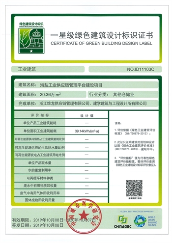 海鹽工業(yè)供應(yīng)鏈管理平臺建設(shè)項目獲得一星級綠色建筑設(shè)計標(biāo)識 |