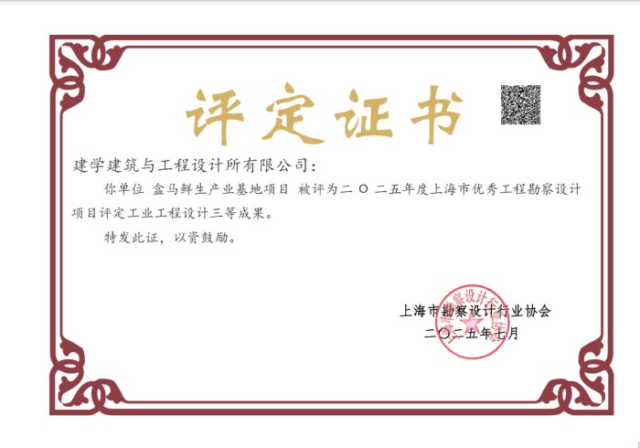 2025年度上海市優秀工程勘察設計項目已揭曉,由我司設計的盒馬鮮生產業基地項目榮獲工業工程設計三等成果。