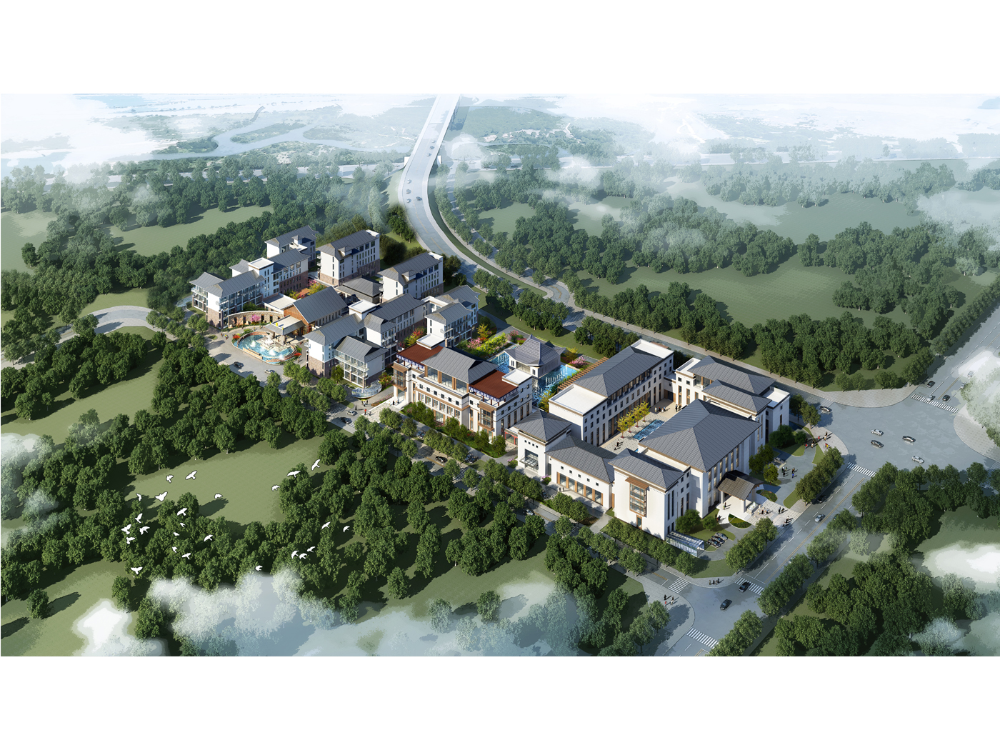 南面臨尼洋河設3~5層度假型酒店,風景獨好,圍繞酒店中央軸線不完全對稱布置酒店客房,形成舒展大氣有機自由的空間形態。北面會議中心臨巴吉西路,有良好的可昭示性,不僅服務于酒店,同時面向林芝開放。康體中心與會議中心及配套服務樓等圍合成合院式建筑組團。餐飲中心位居酒店和康體會議中心之間,同時臨街布置,以餐飲中心和景觀亭為中心靜水池面形成景觀軸線。餐飲中心方便服務酒店及康體會議中心的人群,同時對外開放。酒店、餐飲、康體會議中心分別設置,在整體上又相互呼應,整個建筑群通過建筑走廊、景觀廊道等將建筑物聯系在一起,方便客人行走方便。