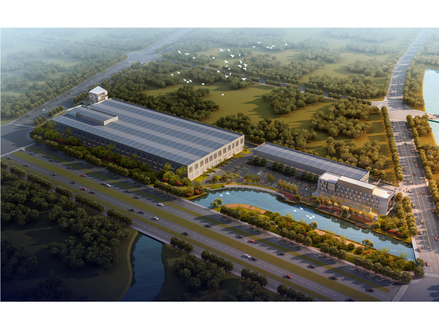華臨綠建1號PC研發展示中心建筑面積約5630㎡,定位為被動式裝配式辦公樓。一層主要功能為PC展示中心,二-四層為PC研發中心,頂層考慮為高管宿舍。