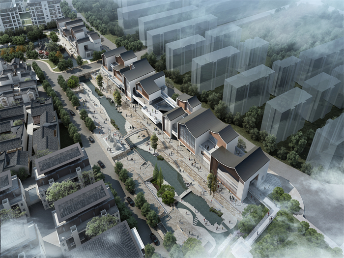 項目位于余杭街道核心區域——余杭老城,東至劉仙閣路,南至直街南路,西至新橋路,北至西險大塘,總用地面積為 22.30 公頃(334.5 畝)。項目打造為展現雙千年風情、居游相宜、高端文創產業聚集的江南水鄉小鎮,包含文化中心、休閑商業、文創街區、博物館等功能。